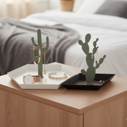 Apporte une touche de fantaisie à ton intérieur avec ces incroyables plateaux et porte-bijoux en forme de cactus ! Pratiques et fonctionnels, ils te permettront d'exposer avec élégance tes colliers, bagues, bracelets et autres bijoux préférés.